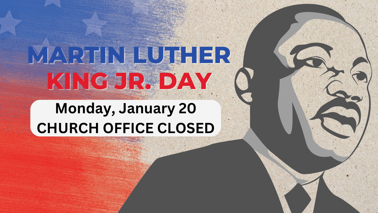 The church office will be closed on Monday, January 19 in observance of Martin Luther King Jr. Day.